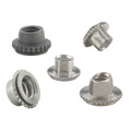 Locking and Non-locking ThreadsThese fasteners provide load-bearing threads in thin sheets and permit up to .030”/0.76 mm adjustment for mating hole misalignment.The self-clinching feature offers fast and simple assembly. The fasteners are squeezed into prepared More... holes using any standard press. The sheet remains flush on one side, and the fastener is permanently locked in place.Extra strength and support in assembly is obtained by the threads of the floating nut extending fully into the retainer shank (a unique PEM feature). A self-locking version of the fastener is also offered. Thread locking torque performance is equivalent to applicable NASM25027 specifications.Non-locking Type A4 and self-locking Type LA4 fasteners provide load-bearing threads in stainless steel sheets as thin as .038” with hardness up to HRB 88 on the Rockwell “B” scale.Many PEM Type AS and AC self-clinching floating fasteners correspond to sizes in US NASM45938/11 specifications. Check our web site for a complete Military Specification and National Aerospace Standards Reference Guide (Bulletin NASM). Less