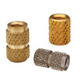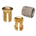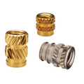 Ultrasonic - Installed by pressing the insert into the mounting hole with ultrasonic insertion equipment while simultaneously applying a high frequency vibration. Frictional heat caused by the vibration melts the plastic surrounding the insert allowing easy insertion. More... When the vibration ceases, the plastic solidifies, locking the insert permanently in place.Heat Staking - Installed by pressing the insert into the mounting hole with a thermal press to melt the plastic surrounding the insert. Less