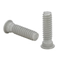 PEM® self-clinching, flush-head studs with X-Press™ threads are typically used with push-on or other plastic fasteners. The coarse thread design of the thread reduces assembly time and provides high retention force.These self-clinching studs are installed More... in metal sheets by pressing them into place with any standard press. They can also be installed using automated equipment during the in-die process.PEM® studs with X-Press™ threads are available with 5 mm and 6 mm metric threads. Lengths range from 10 mm to 25 mm.Features and BenefitsOffers fast, reliable attachment.Reduces assembly time.Allows for lighter assembly.Self-clinching stud mounts flush in metal sheets as thin as 1mm.Thread design accommodates paints and coatings without compromising performance.Self-clinching technology is cleaner and has a more attractive finished appearance than welding.Can be installed during the stamping process with PEMSERTER® in-die technology. Less