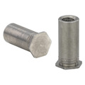 Full hex feature for high torque applications.Allows near-flush installations with no need for special hole preparations.Standard material: Low Carbon Steel.Materials available on special order: 300 Series Stainless Steel, Alloy No. 260 Brass, 6053-T4 or 6061-T4 Aluminum. More...Less
