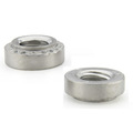 PEM® weld nuts (Types WN/WNS) provide load-bearing threads in metal sheets too thin to tap, and permit faster assembly.PEM brand weld nuts overcome many problems associated with other weld nuts – burn-outs, complicated electrodes and pilots, tedious time-consuming More... indexing and re-tapping to remove weld spatter. Their design, based on the experience of hundreds of users of weld nuts, speeds production using standard equipment, thereby reducing labor costs.PEM stainless steel weld nuts offer the added advantage of resisting corrosion. You may specify steel or stainless steel for your requirements and be sure you are getting the weld nuts that are easiest to install. A variety of welding equipment is suitable for installation of PEM weld nuts. Best results have been obtained with a 50KVA press-type, spot-welding machine whose upper welding head moves vertically in a straight line with the lower electrode. Flat-faced electrodes with tip diameters .125” / 3.2 mm larger than the “E” dimension of the PEM weld nut should be used. Less