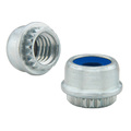 The thread locking torque performance of Type PL and PLC PEMHEX® self-clinching fasteners is equivalent to applicable NASM25027 specifications. A nylon hexagonal element provides a reusable, non-metallic prevailing torque thread lock. The strong knurled collar More... receives the installation force and resists torque. The spin resistance of the knurl greatly exceeds the torque that can be exerted by the self-locking feature. As the knurled collar is embedded in the sheet, the undercut cavity beneath the collar is filled with displaced sheet material, thereby captivating the fastener in the sheet.The color blue for fastener locking elements is a registered trademark. Unified fasteners have a blue nylon locking element and metric fasteners have a black nylon locking element. Less