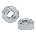 Self-clinching nuts are installed by placing them in properly sized holes in sheets and applying a parallelsqueezing force to the head of the nut. The sheet metal surrounding the head cold flows into an undercut therebymaking the fastener an integral part of the sheet. More... A serrated clinching ring prevents the fastener from rotating afterinstallation.Type S, SS, CLS, and CLSS nuts provide load-bearing threads in thin sheets with highpushout and torque-out resistance.Type SP, PEM 300® nuts provide strong load-bearing threads in stainless steel sheetsas thin as .030”. Less