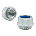 The thread locking torque performance of Type PL and PLC PEMHEX® self-clinching fasteners is equivalent to applicable NASM25027 specifications. A nylon hexagonal element provides a reusable, non-metallic prevailing torque thread lock. The strong knurled collar More... receives the installation force and resists torque. The spin resistance of the knurl greatly exceeds the torque that can be exerted by the self-locking feature. As the knurled collar is embedded in the sheet, the undercut cavity beneath the collar is filled with displaced sheet material, thereby captivating the fastener in the sheet.The color blue for fastener locking elements is a registered trademark. Unified fasteners have a blue nylon locking element and metric fasteners have a black nylon locking element. Less