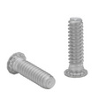 Enlarged head diameter reduces stress on panel.Thicker head allows for larger hole in attached panels.Clinch design provides high-strength in sheets as thin as 0.8 mm.Recommended for use in steel or aluminum sheets HRB (Rockwell “B” Scale) 85 or less and More... HB (Hardness Brinell) 165 or less. Less